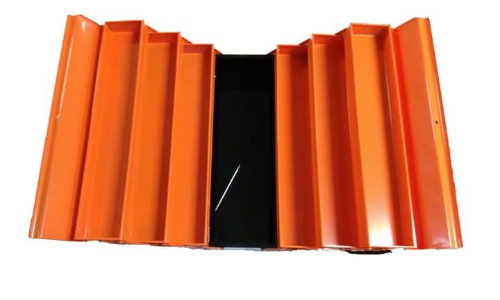 Skrzynka narzędziowa 7-częściowa CORONA wykonana jest ze stalowej blachy 0,6 mm, lakierowanej proszkowo.