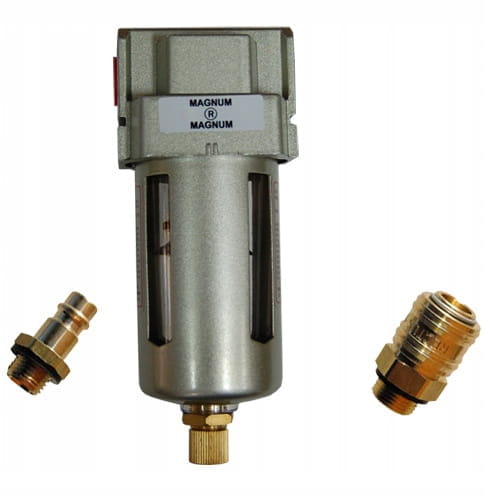 Filtr powietrza jest elementem instalacji pneumatycznej, mający za zadanie wyłapanie skraplającej się wody oraz innych zanieczyszczeń powietrza. Doskonale nadaje się do sprężarek o dużej wydajności, dzięki dużej średnicy przyłączeniowej, nie powodując strat ciśnienia. Opróżnianie zbiornika z nagromadzonej wody za pomocą korka spustowego.