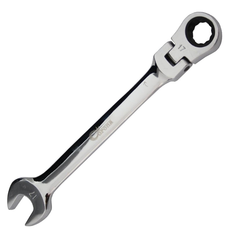 Klucz płasko-oczkowy przegubowy z grzechotką.