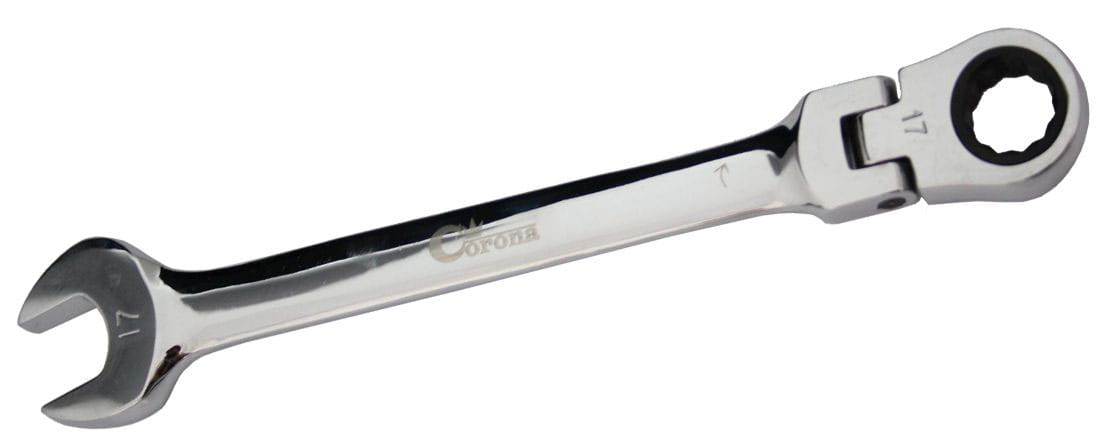 Klucz płasko-oczkowy przegubowy z grzechotką.