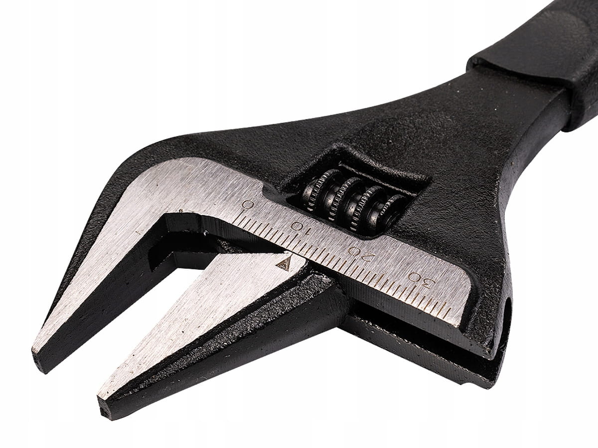 Klucz nastawny z poszerzonym zakresem rozstawu szczęk (w stosunku do standardowych w tym rozmiarze).