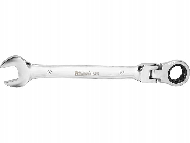 Klucz płasko-oczkowy przegubowy z grzechotką.