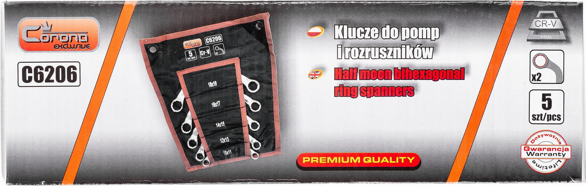 - Rozmiary: 10x11, 12x13, 14x15, 16x17, 18x19 mm