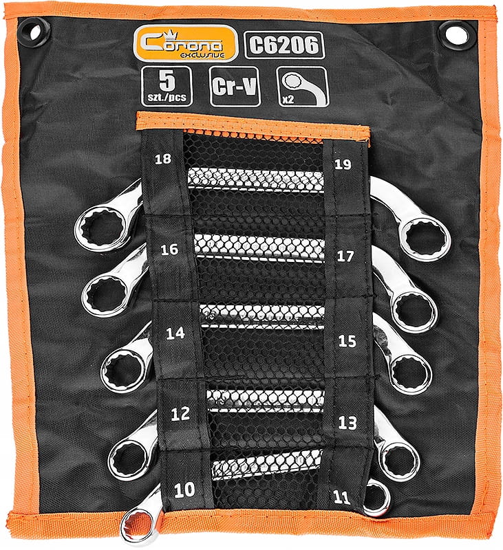 Zestaw 5 sztuk dwustronnych kluczy oczkowych typu „C” w zakresie rozmiarów: 10 - 19 mm.