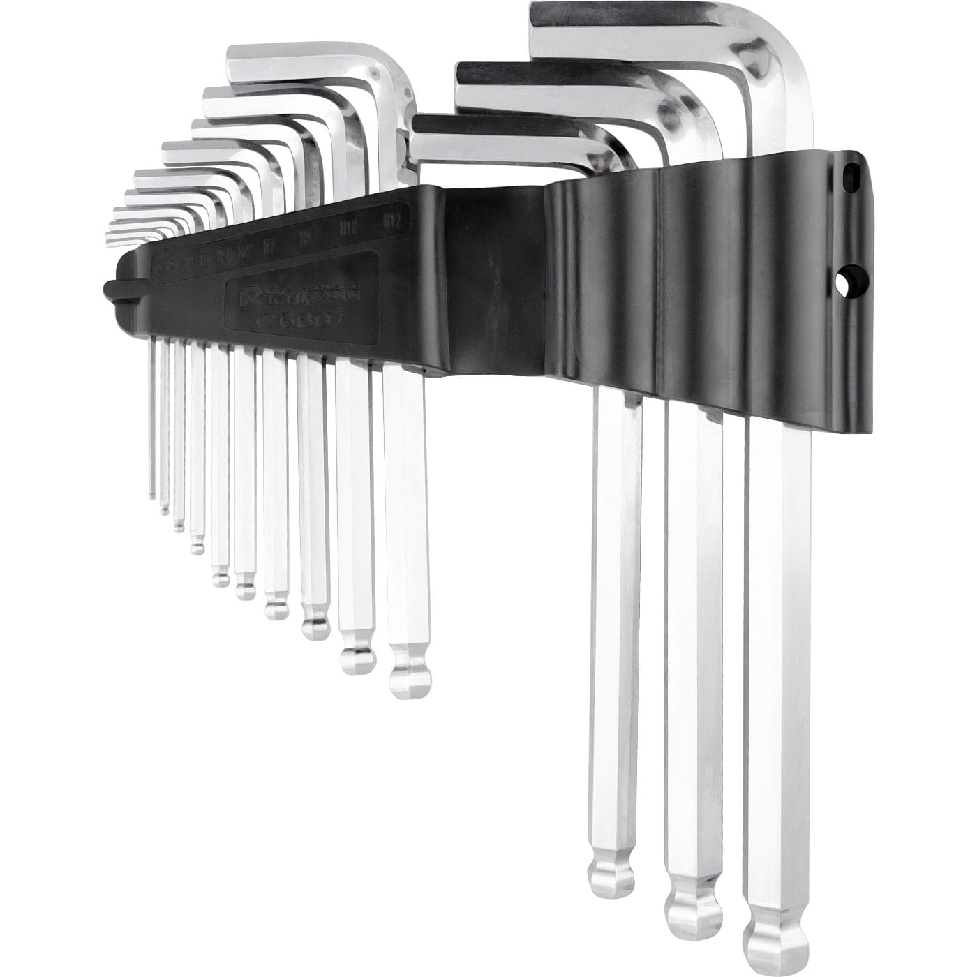 Zestaw 13 sztuk kluczy imbusowych z kulką w rozmiarach 2,0 – 10,0 mm.