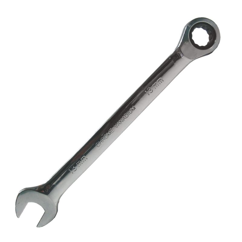 Standardowy klucz płasko-oczkowy z grzechotką firmy Richmann-Corona. Klucze wykonano z stali chromowo-wanadowej (CR-V), wysoka zawartość chromu gwarantuje odporność stali na korozję, utlenianie, ścieranie i dużą wytrzymałość w wysokiej temperaturze, zaś dodatek wanadu również wpływa na odporność na działanie wysokich temperatur oraz nieuleganie deformacjom.