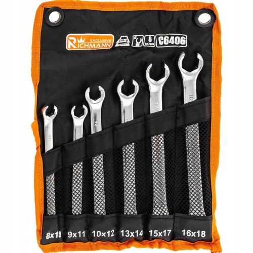 Zestaw 6 kluczy półotwartych do przewodów hamulcowych.