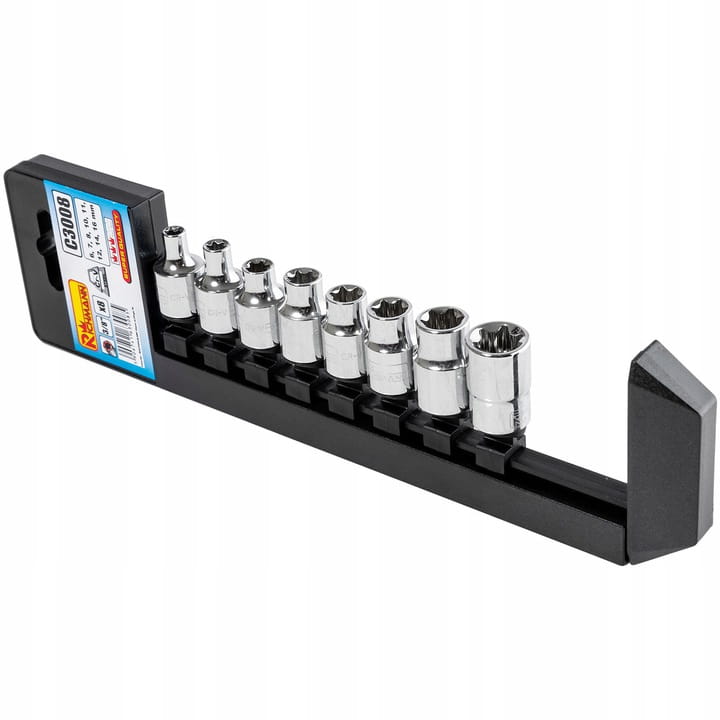 Zestaw 8 sztuk nasadek 3/4” typu TORX w zakresie rozmiarów: E6-E16.