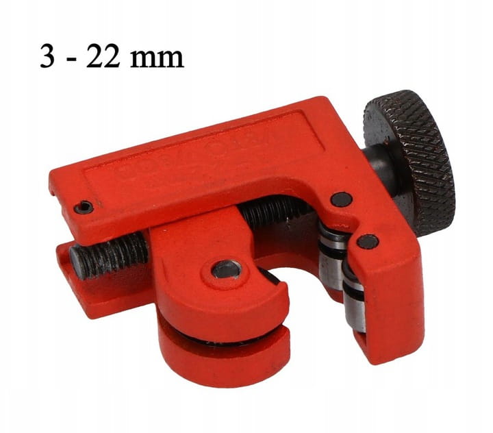 Opis techniczny • Typ ciężki, • 2 kóła łożyskowane, • Precyzyjne wrzeciono regulacyjne do regulacji docisku rolki tnącej, • Najlepiej nadaje się do rur aluminiowych, miedzianych, stalowych,
