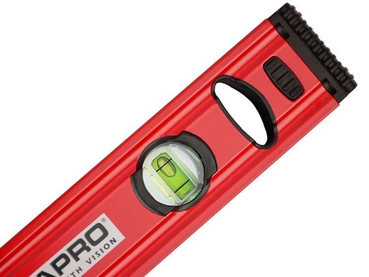 Poziomica posiada 2 akrylowe libele wysokoodporne na uszkodzenia, jedna w pozycji poziomej a druga w pionowej.