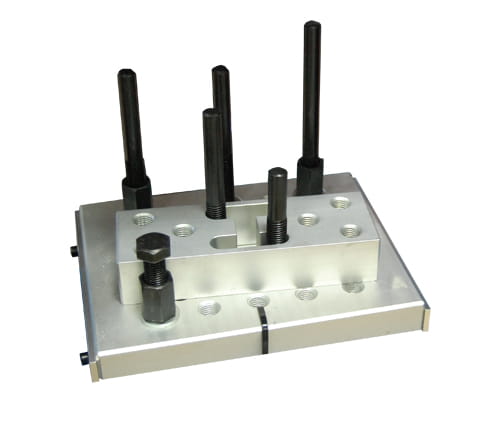 Uniwersalna 3 punktowa podstawa. Bolce mogą być dowolnie przestawiane, dopasowywane do wysokości. Odpowiednie prowadnice boczne podstawy gwarantują dużą stabilizację podczas użytkowania. Liczba i ułożenie otworów gwintów w bloku podstawy umożliwiają dopasowanie do każdej powierzchni obróbki.