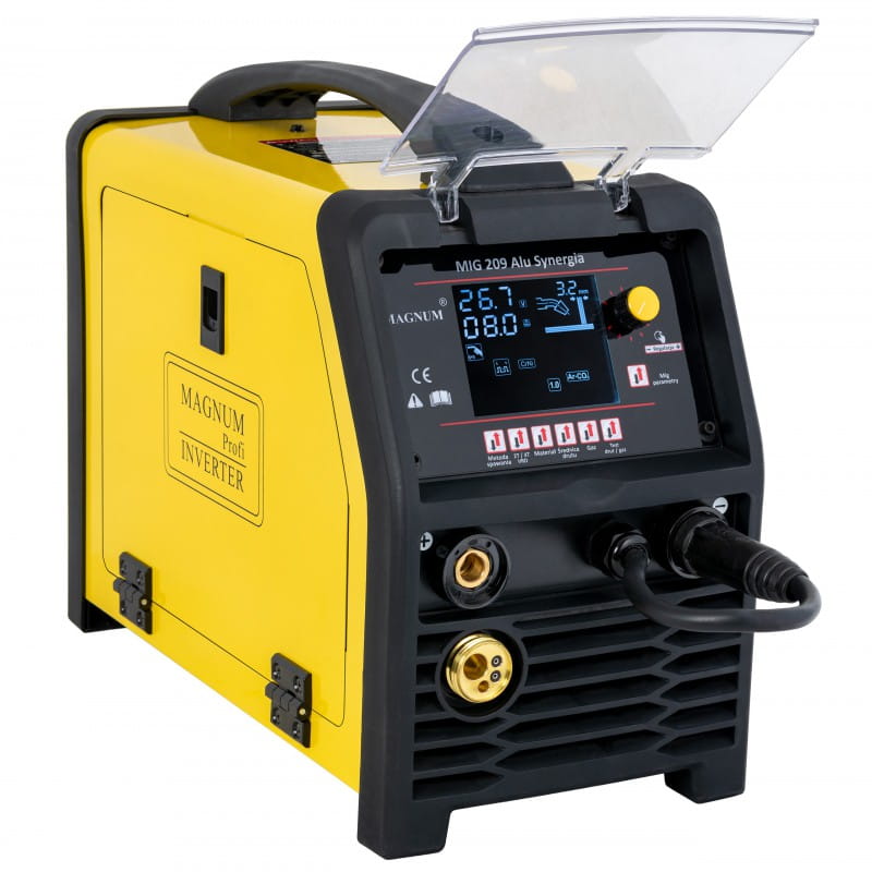 Urządzenie MAGNUM MIG 209 Alu Synergia jest profesjonalnym, synergicznym półautomatem spawalniczym, przeznaczonym do ręcznego, elektrycznego spawania stali niskowęglowej, niskostopowej (MAG), stali stopowych oraz aluminium i jego stopów (MIG).