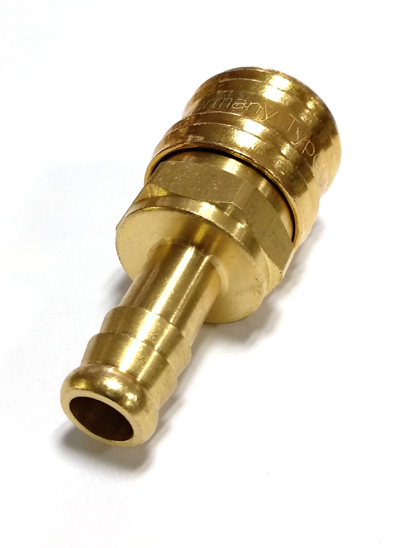 Szybkozłączka pneumatyczna wykonana została z mosiądzu.