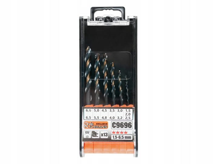 Przedmiotem aukcji jest zestaw wierteł do metalu marki Richmann Exclusive (dawiej Richmann Exclusive) w rozmiarach 1,5-6,5mm przeznaczony do użytku profesjonalnego w przemyśle i rzemiośle. Wiertła wykonane są ze stali szybkotnącej HSS i posiadają silne krawędzie tnące niewrażliwe na uderzenia i siły boczne. Wiertła przeznaczone są do uchwytów cylindrycznych.