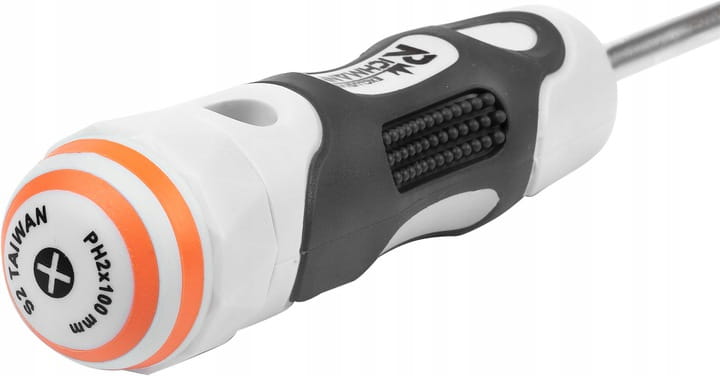 • Rotacyjna końcówka rękojeści wkrętaka zapewnia kilkukrotnie szybsze wkręcania.